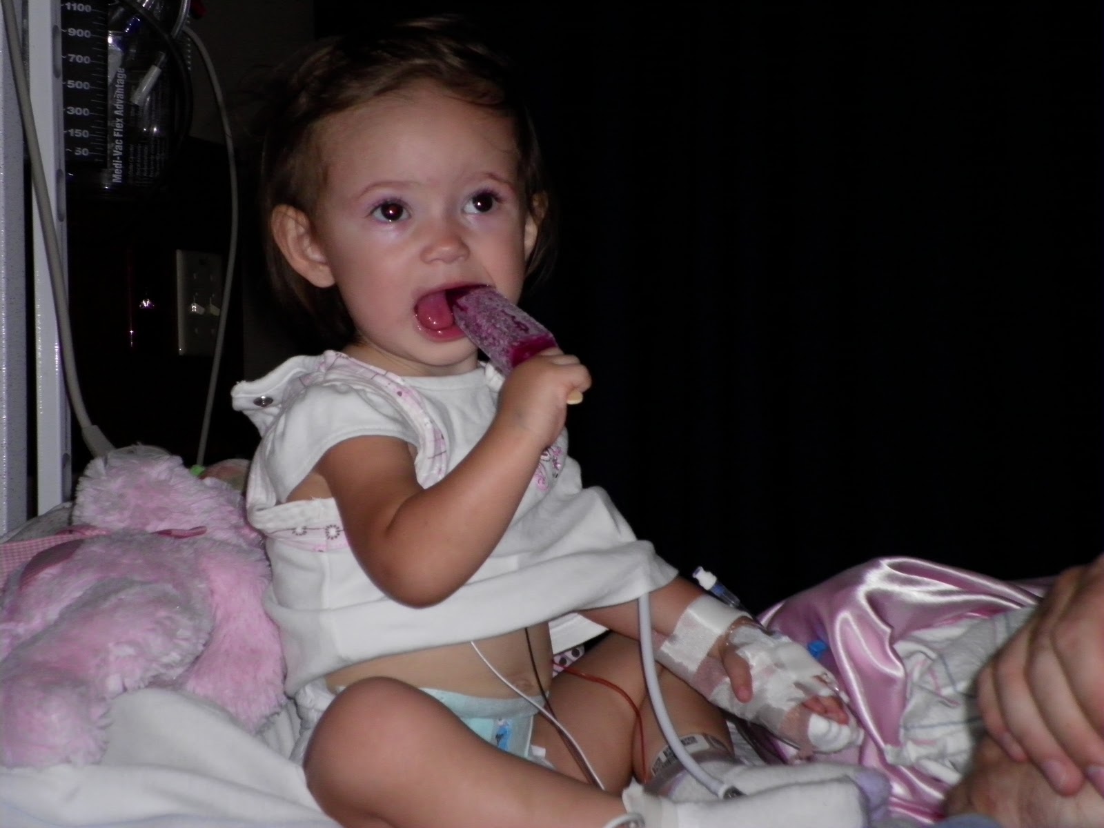 Todd takes her back and tries again to comfort her. Then she BARFS all over Todd's work uniform. (He was supposed to go straight to work right after the MRI....not anymore). Then we're all frantically trying to help her and clean up her vomit which is mostly pedialyte. We are barely able to calm her down when the nurse drops the bomb.
